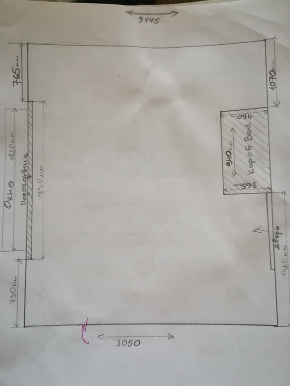 Имеем кухню 10 м с вентиляционным коробом. Считали несколько вариантов, не можем определиться как лучше сделать.