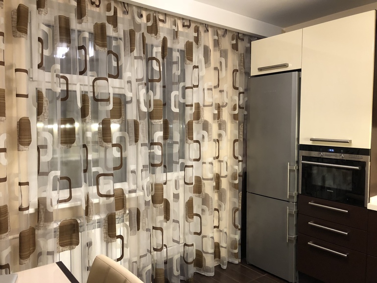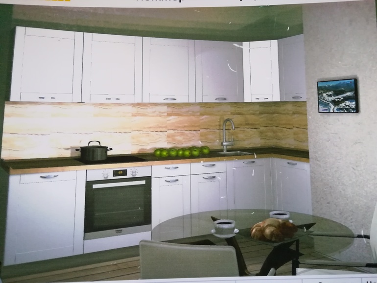 У нас планировка другая. Но что мне не нравится в нашей кухне (покупали с мебелью) это то что шкафы не вплотную с потолкои и что фасади внизу коричневые.