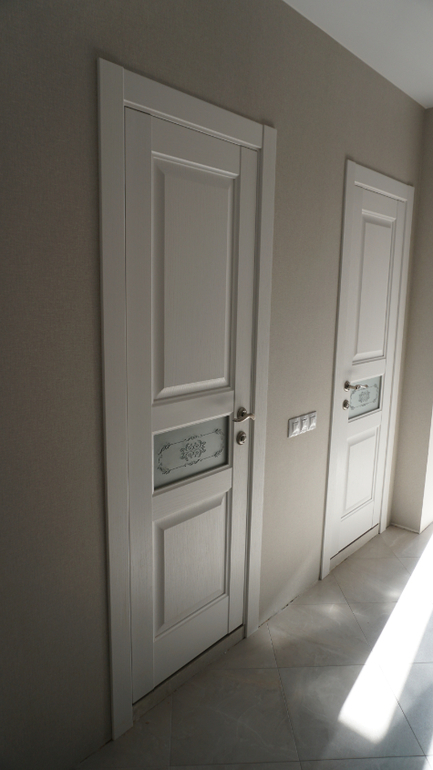 Исходные данные были такие: 3 двери со стеклянной вставкой (ванная/туалет/кухня), кухня система сдвижная в бок, 2 двери глухие (спальня/детская), система раздвижная и 2 двери стеклянные (зал). Обрамление входной двери и вкладка на входную дверь. Замки магнитные, петли скрытые. С таким запросом я и пошла по салонам. Вот мои результаты, надеюсь помогут!