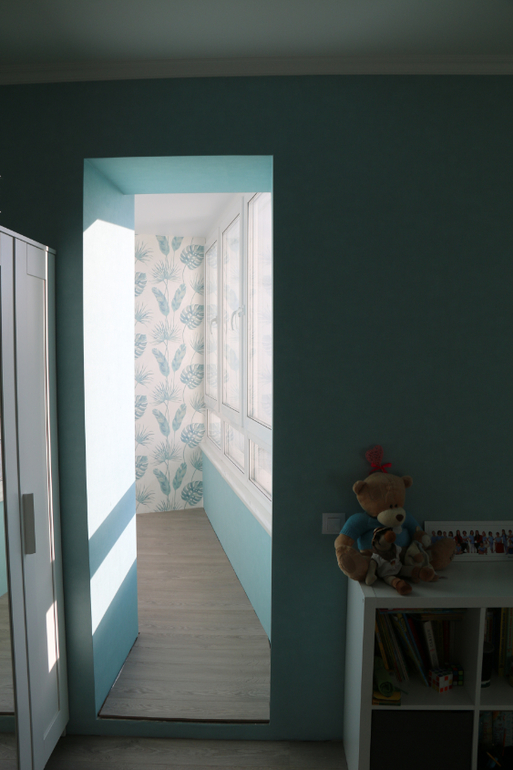 Из детской выход на два балкона. Один мы оставили, а второй присоединили к комнате. Там планируется игровая зона со шведской стенкой.