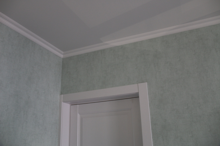 Заодно напишу про потолки: в комнатах мы ровняли потолки не идеально прям и белили, карнизы одинаковые Orac. Коридор, кухня, ванная/туалет - натяжные.