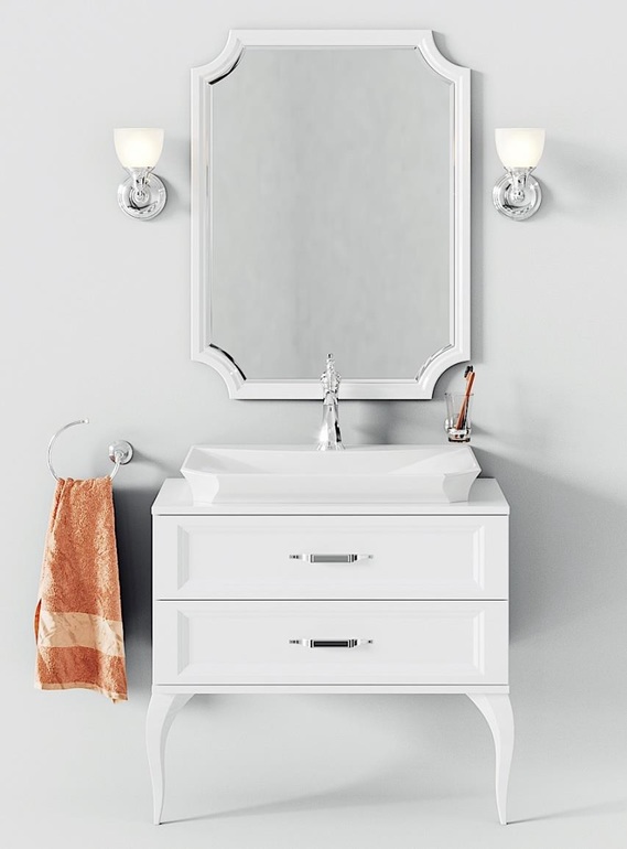 Мне кажется на такой высоте оно будет сильно забрызгиваться водой. Или нет? Стакан для щёток и дозатор для жидкого мыла планирую по бокам от зеркала повесить в месте фигурного края, примерно как на картинке. Высота зеркала 92 см с рамой. Поднять могу на 12-15 см от раковины, выше не получится, там сверху по центру светильник будет, нужно оставить отступ.