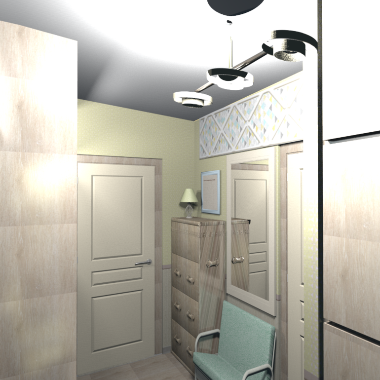 Вот стена напротив шкафа, слева "на ней" будут комод и зеркало. Справа - банкетка.