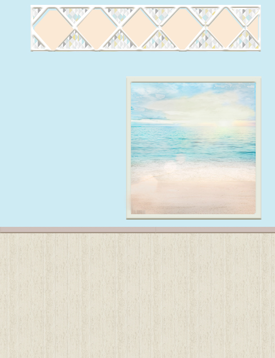 Но в тон к треугольникам голубого и желтого цветов уже заколерована краска для фоновых обоев под покраску. Внизу будут "под доски"