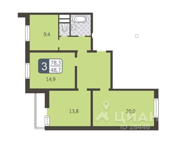 Я за вариант где: 20м- это ваша спальня+гостиная. Зонирование перегородками или кровать траснформер - тут уже как захотите. 13.8м с балконом- комната сына 14.9м- комната дочери