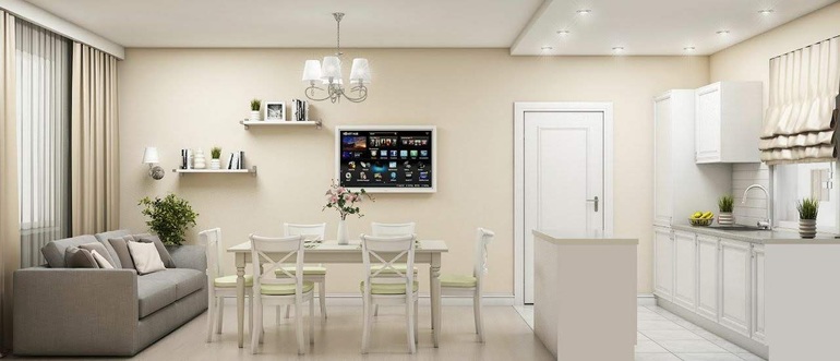 Телек будет поворачиваться, туда его определила чтобы можно было со всех зон смотреть поочередно, к примеру я готовлю смотрю, муж приходит смотрит он с дивана) а я только слушаю😂 и стена как раз проходная и свободна.. Ну это я из сегодняшнего опыта беру.. А вообще надо еще подумать. Спасибо!