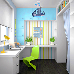 - Желтый, голубой, белый цвет делает комнату очень просторной