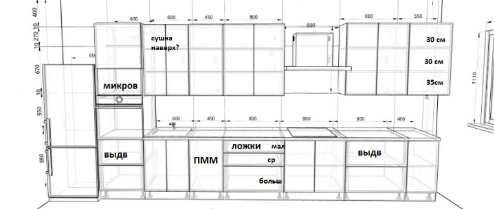 Сушку можно сделать однодверную с открыванием вправо с петлями полного открывания,обычно фасад 600 не делят,это слишком мелко получается.