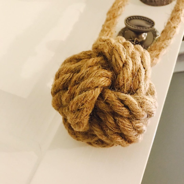 Короче, оказалось проще купить канат, чем с'ездить за стопорами😂. Сказать честно, с этим шариком я мудо...сь пару часов. Мой мозг отказывался понимать, как его затягивать. Это не лучший вариант, но это то, что я хочу на текущий момент. Во внутрь нужен какой-то шарик в виде утяжелителя. Если сильно стукнуть дверью, без шарика не спасет 🙈.
