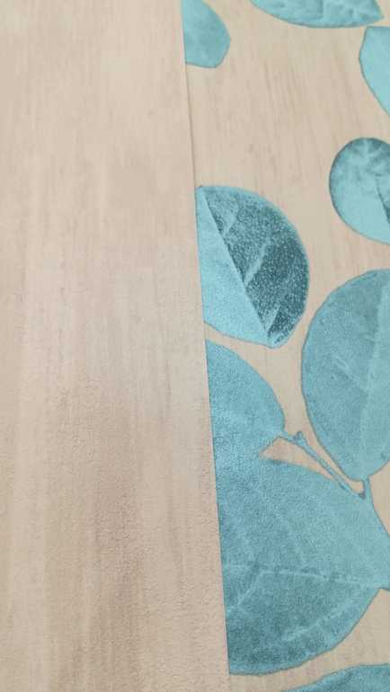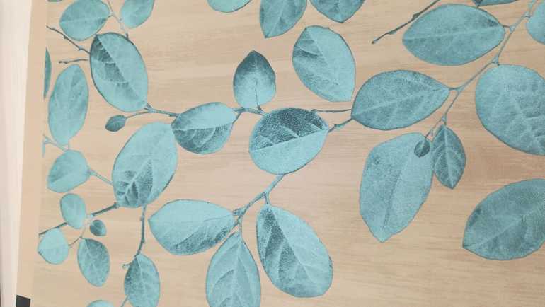 Очень мне понравились обои с листиками, бирюза (голубой переходит в морскую волну), фон как мне сказали кофе с молоком, в живую не видела, в гостиную. Комната примерно 17 метров. Как думаете, можно сочетать с ламинатом или получится ерунда?