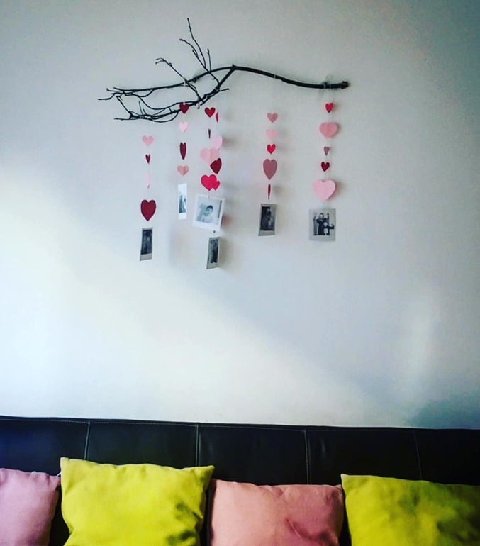 Решили поменять немного вид гостиной, а тут и праздник влюбленных на подходе) Сегодня сделали декорацию над диваном в розовом цвете.