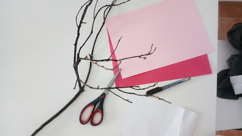 Основа композиции - ветка, поэтому после школы и секции пошли в парк искать подходящую палочку.