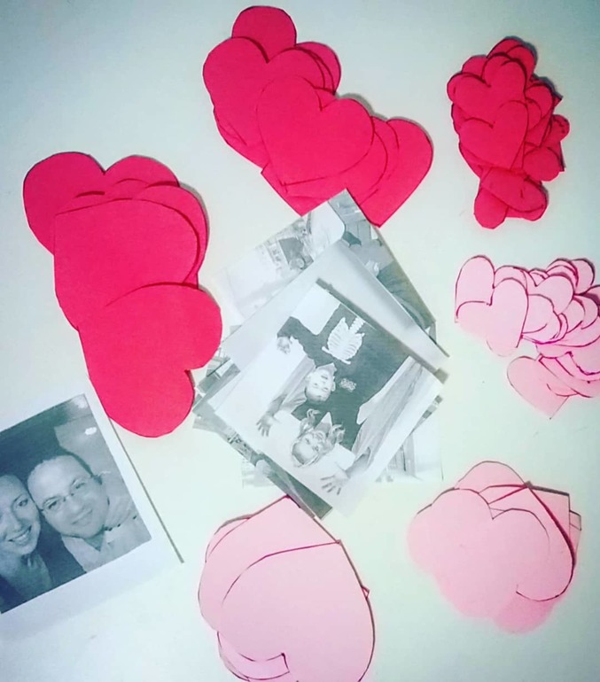 Приклеивал зато Наум, внизу на веревочке фотоснимок, затем двухсторонние сердечки: