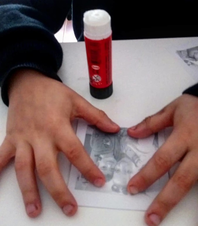 Сын клеил в рамочки фото, с каждой стороны. Получилось 6 фоторамок с 12 фото.