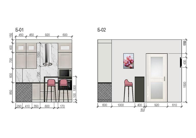 Зачем одинокой девушке такое количество ящиков? Много утвари? Много готовит? А кто это все ест? )) за данной барной стойкой даже вдвоем будет тесно. Либо заказчица сама любит много поесть и борется с лишним весом (поэтому холодильник так далеко - чтобы бегать побольше пришлось), либо ее профессия связана с кулинарией на заказ )) По цветам проект очень понравился! Нежно, красиво. А розеток совсем нет? А как торты на заказ готовить? Там же блендеры всякие подключать нужно.