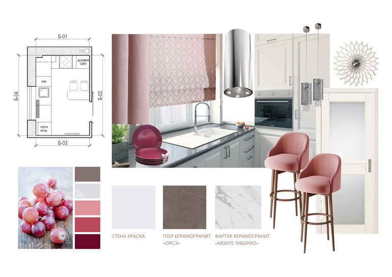 Открыла, ожидая увидеть нечто в Барби-стиле, но картинки приятно удивили: сдержанно, гармонично и минимум неброского розового. Барная стойка вместо стола - на любителя, которым, видимо, является заказчик. В функциональности прочего не уверена: холодильник (он ведь слева от входа, как я поняла), мойка и плита далеко разнесены, не хватает освещения рабочей зоны над мойкой и левее, непонятно, где сушится посуда.