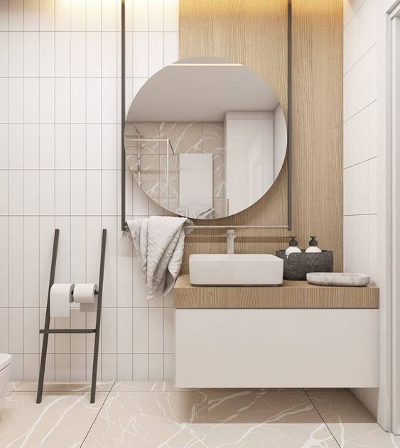Интерьерное решение ванной комнатыДобрый вечер! Хочу туалет белый в сочетании с деревом. С белым все понятно. А вот под дерево плитки много, но что-то глаза разбежались.