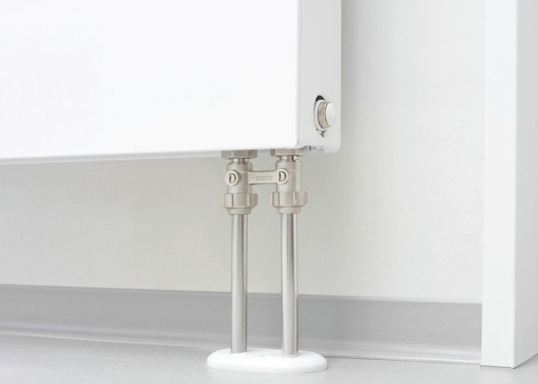 У нас у батарей нижняя подводка, к трубам примыкает ламинат.
