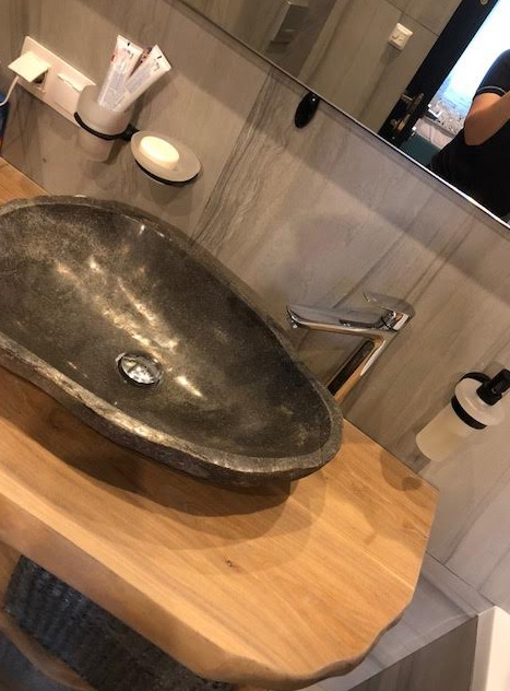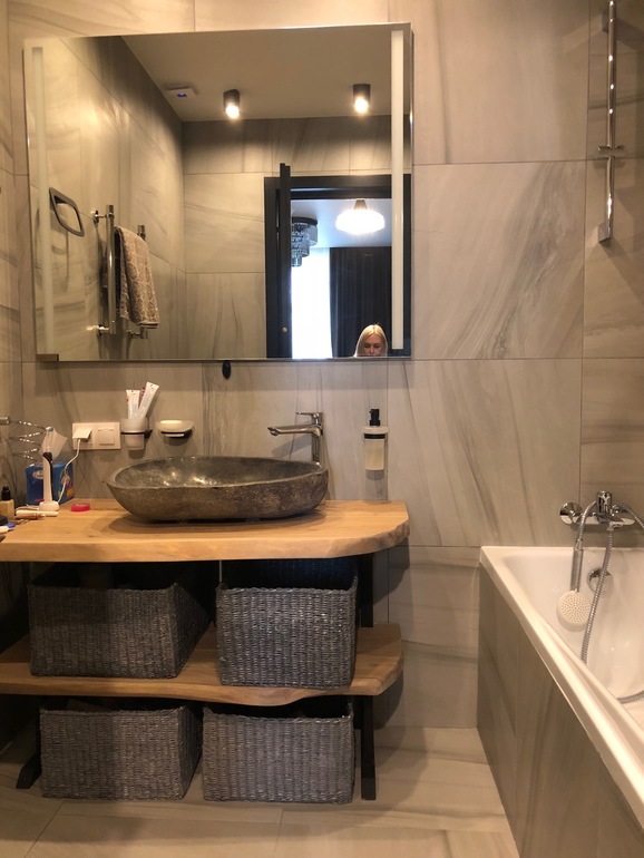 полностью поменяли раковину с мебелью+зеркало и аксессуары