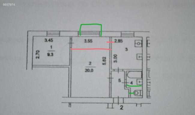 Вопросы и ответыКак думаете, возможна? У меня нет информации несущая ли стена. Дом кирпичный. Зелёное это то, что уже есть, красное как я думаю. Интересует проем из кухни