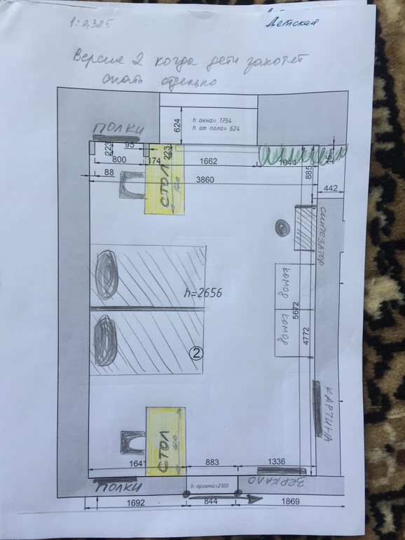 Давно читаю это сообщество, но написать сама решилась только сегодня ))) Наконец-то приобрели квартиру мечты - трешка с большой Детской комнатой 22 квм. К сожалению форма комнаты вытянутая и только одно окно. Около окна есть выход на балкон. Окно смотрит на северо-восток, то есть комната почти всегда без солнца.