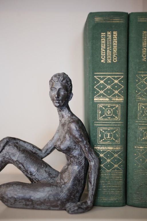 -В современных квартирах часто в качестве конструктивных элементов используются колонны сечением 40*40см. И как правило, они выступают от стены на 25-30см- это идеальная глубина для ниши под книжные полки. В этом проекте здесь была колонна. С помощью гипсокартона мы и колонну нивелировали и получили отличный книжный шкаф.