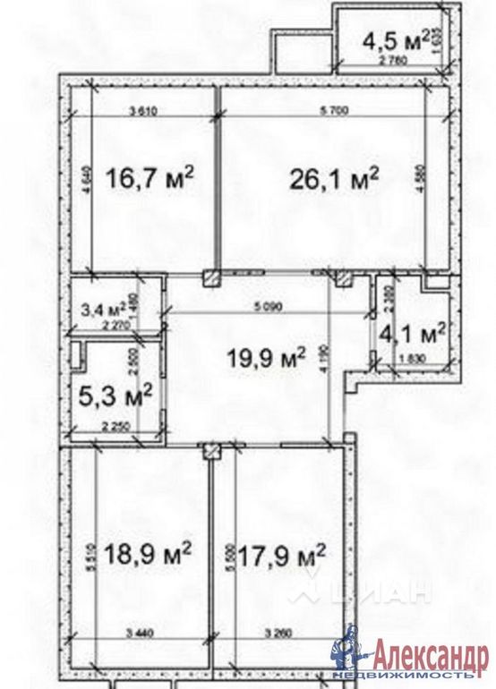 "В идеале хотелось бы три спальни" - они у вас есть, 18,9; 17,9; 16,7.