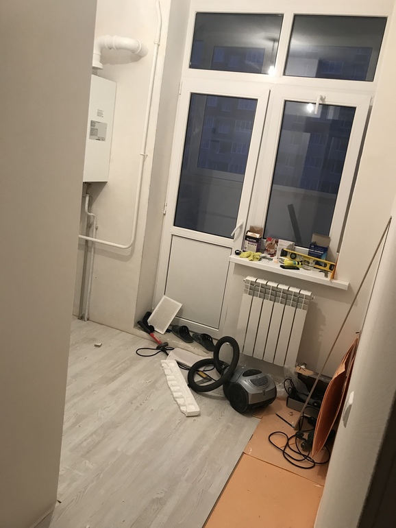 Шкаф, чтобы спрятать котёл ещё не собирали.