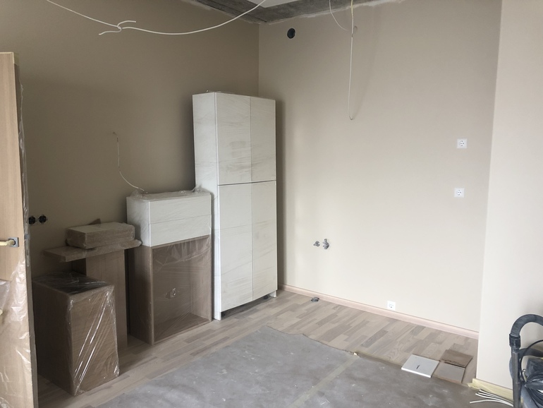 Стены в кухне-гостиной почти готовы! Решили покрасить в похожий цвет, как был от застройщика, но более дорогой краской с матовым финишем💫 Разница колоссальная! Жалко, что фото этого не передаёт, но стены стали такими прям... ух! 😌