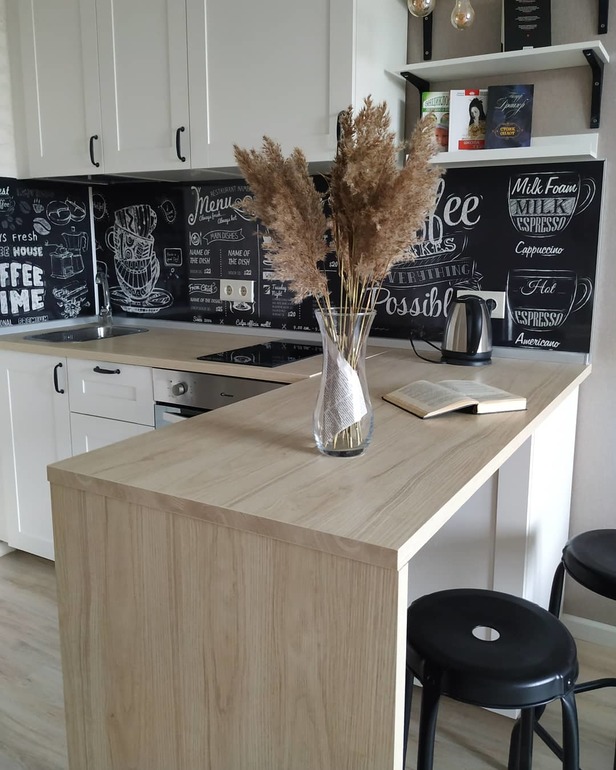 А мне дизайн понравился! Только не понятно что там на окнах? только тюль? Я помню, что в скандинавском стиле господствует минимализм, но мне бы 1 тюли было мало )) Может подошли бы римские шторы типа таких. Я кстати заказывала их с рисунком похожим на тот, что на фартуке )) даже помню эти картинки на шаттерстоке