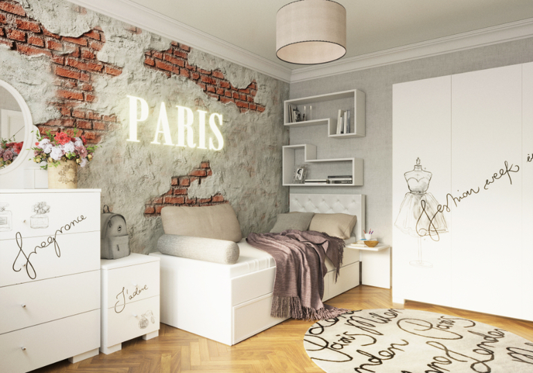 Дело ваше. Но текстиль проще поменять, чем мебель. А серое платьице и в подростковую комнату зайдёт