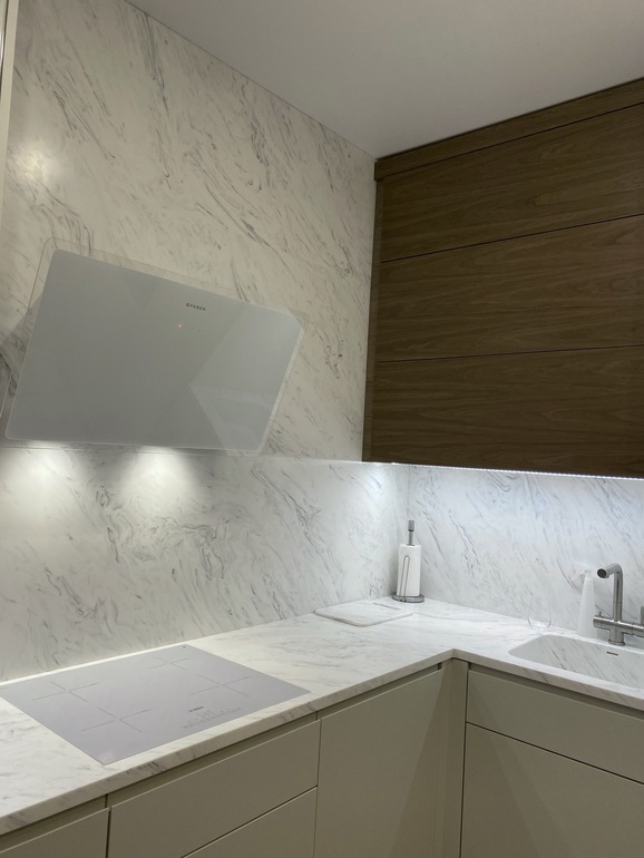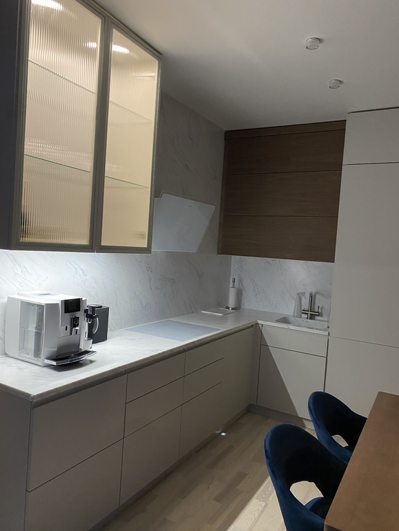 Поздравляю с почти завершённой кухней! Все очень гармонично. Но только один момент, почему кухонщики не нашли угловой профиль гола?