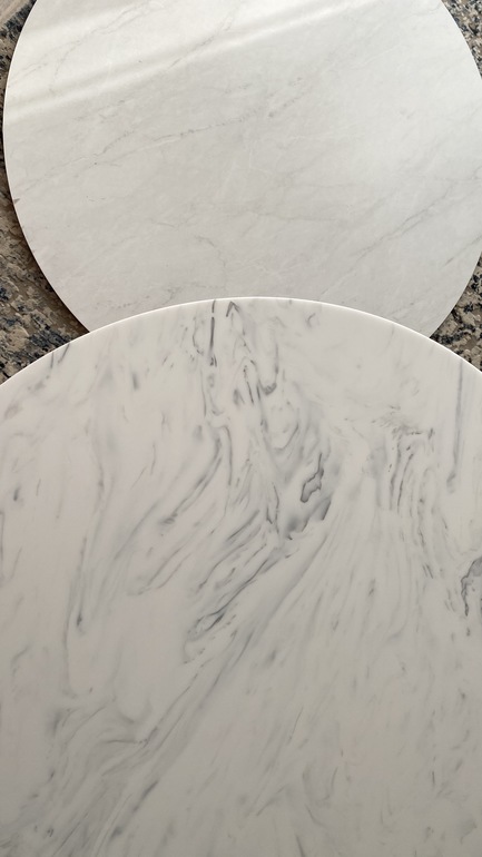 Визуально они чем-то похожи, но качество... небо и земля. Камень выглядит в жизни совершенно иначе, нежели оригинальная столешница 🙈