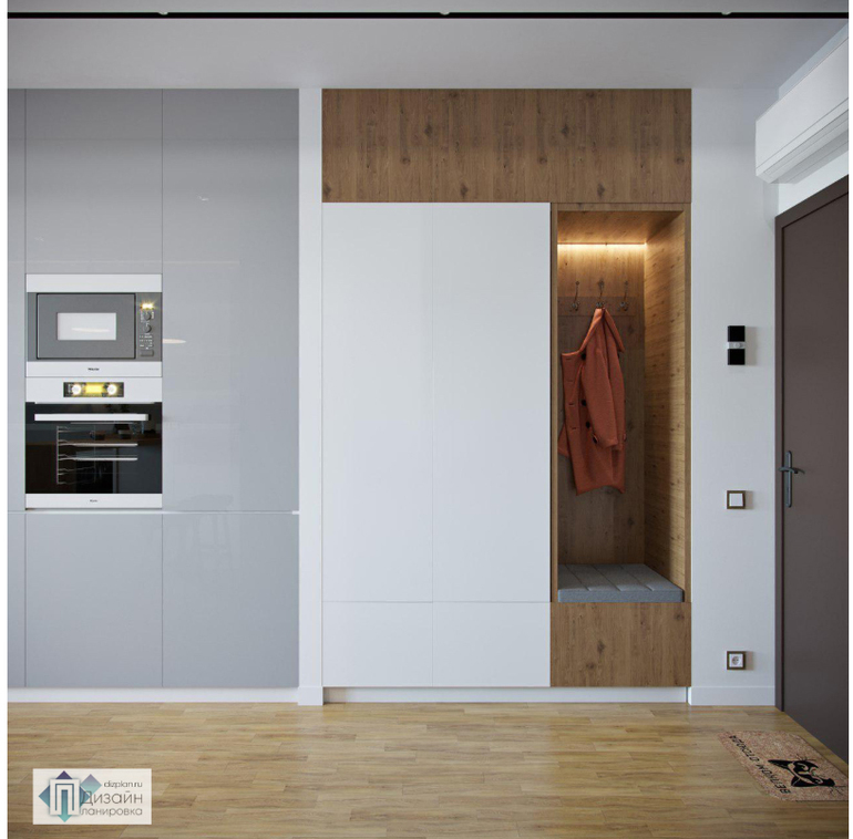 В шкафах до потолка - системы хранения для одежды и бытовых приборов.