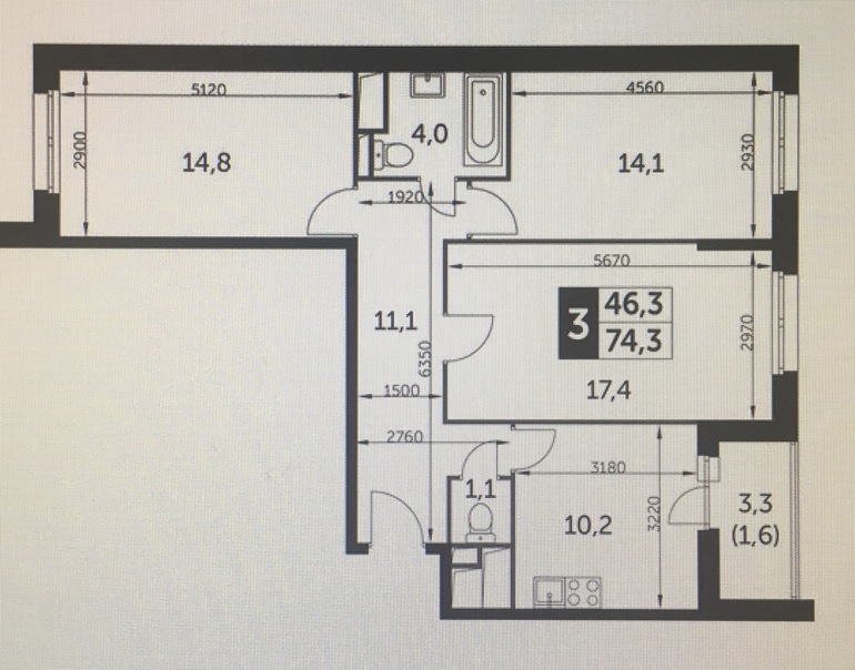 Имеется 3-х комнатная квартира 75 кв.м. Срок сдачи 1-й квартал 2021 года.