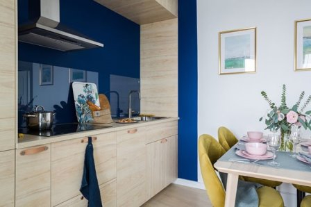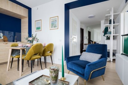 5 - Как покрасить стены? Сделать 2 белых, 2 синих? Однозначно акцентная стена будет, где установлен будет гарнитур и ... Может ту, где окно? Или противоположную?