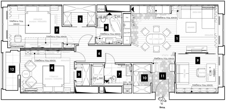 Вот такой получился по-своему уникальный проект - пастельные тона в интерьере современной московской квартиры. На площади в 107 квадратов мы разместили: три комнаты плюс кабинет (так что можно посчитать за четыре), два санузла и целых три гардеробных! Как нам кажется, вполне достойный результат.
