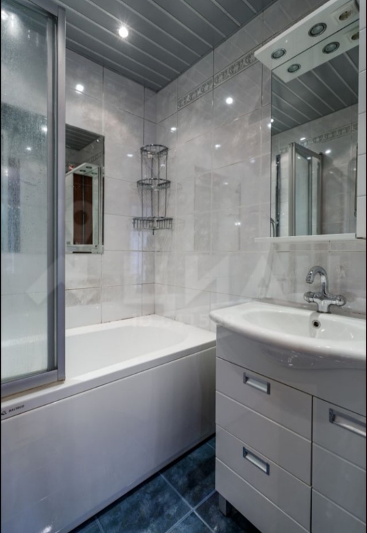 К потолочный панелям на фото я как раз совсем не привязываюсь, я их даже не сразу заметила:) Тут скорее картина в общем, плитка, то как закрывается стояк в туалете, раздвижные стеклянные перегородки в ванной итд.