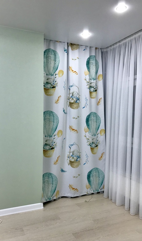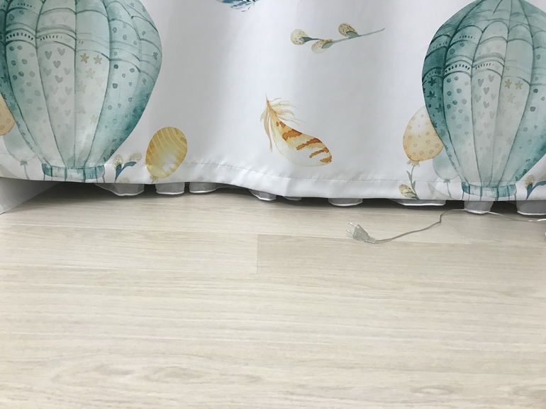 Можно по низу подшить или сделать на липучках( чтобы стирать в машине) вот такую ленту из помпошек. Недавно видела проект одного дизайнера в детскую, она как раз шила такие шторы по низу с помпошками