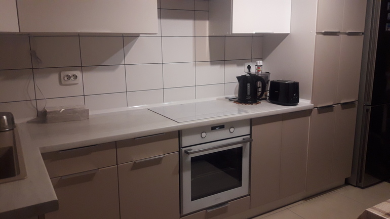 Понимаем, что нужна новая столешня, снова врезать плиту, дополнительный модуль сверху 60см. НО! Придется перемещать модуль 80см за плиту и менять местами пенал с холодильником (нельзя же холодильник впритык к батарее поставить).