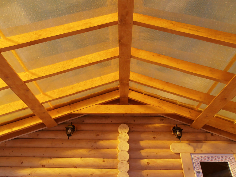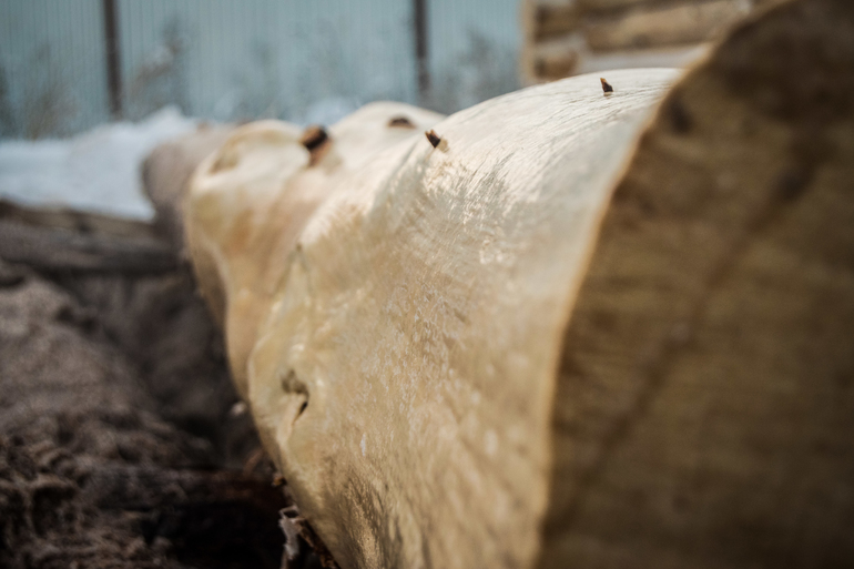 Окорка бревна осуществляется сильным напором воды. Бревно сохраняет свои защитные свойства, имеет благородный золотистый оттенок и свою неповторимую форму. Естественная глянцевая поверхность бревна не требует отделки.