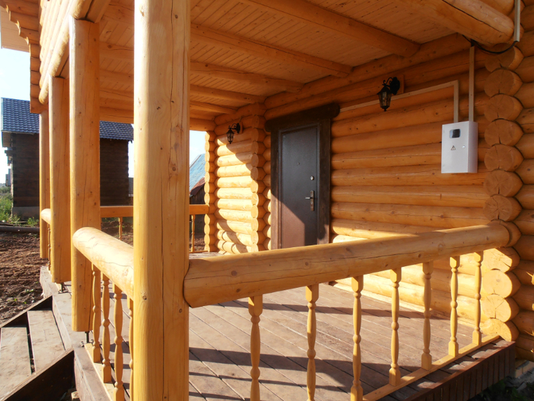 При строгании бревна электрорубанком сохраняется защитный слой древесины, в отличии от оцилиндрованного бревна.