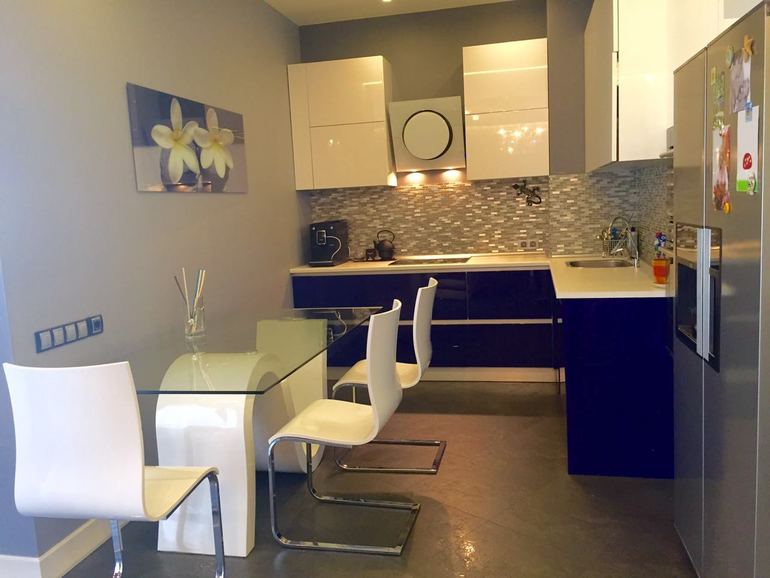 Расположена на 5 этаже 8 этажного монолитно-кирпичного дома в охраняемом поселке. Общая площадь 104 кв. м., кухня-столовая - 52 кв.м., две комнаты - 16 и 13 кв.м., гардеробная. Свободная продажа, оперативный выход на сделку.