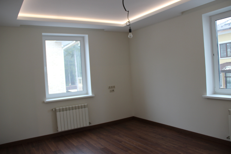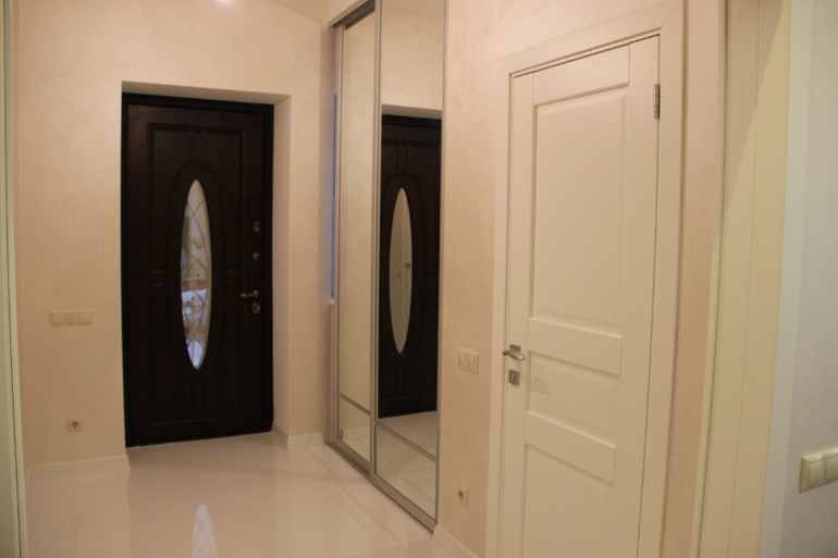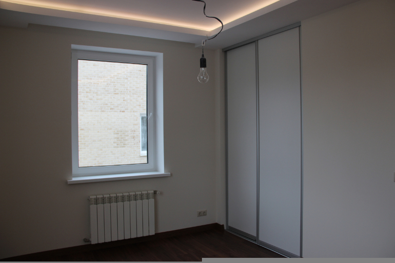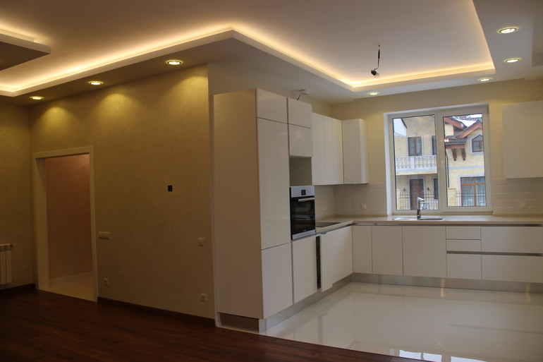 Внутренняя отделка под ключ, со встроенной мебелью и бытовой техникой (встроенная кухня, сантехника, встроенные шкафы-купе, точечные светильники).