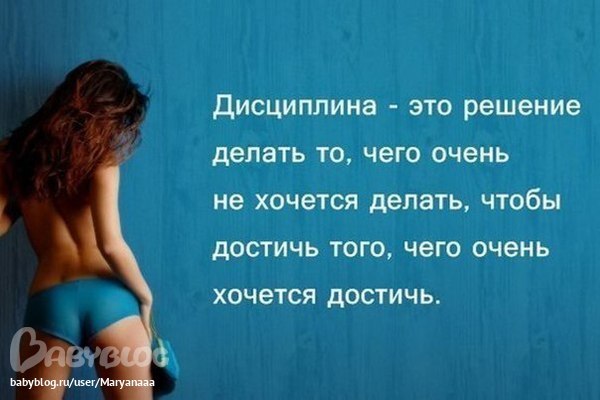 1) занятие с джилиан (сбрось лишний вес)4 б 2) количество выпитой воды (если 8 ст) - 1 б 3) процедуры по уходу за собой (маска на волосы + антицел крем + гель ) 1б 4) прогулка - 1 б 5) дополнительные физ нагрузки (пресс, йога, бодифлекс и тд) - 0 б 6) не едим сладкое и мучное после 12 - 10 б Итого: 19б