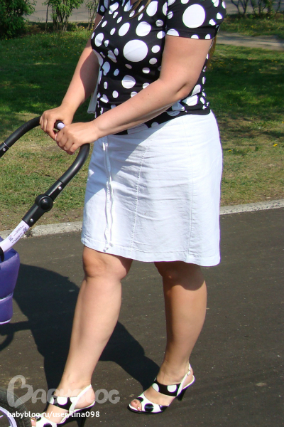 Это я в любимой белой юбочке (так радовалась, что быстро после родов в нее влезла!) прошлым летом: