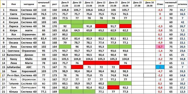№17, пн - 75 кг, вт - 75.1 кг...не знаю что-то вес стоит...и чуть вырос...