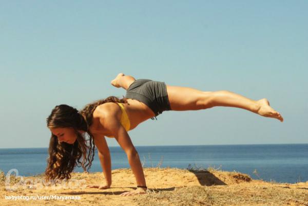- Затем пробуем садиться ноги идут в стороны, руки перед собой держат корпус.