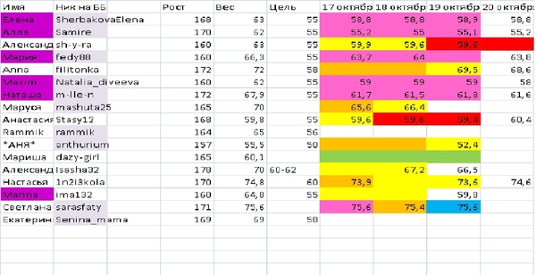 Отчеты-результаты о питании, о тренировкахПроверяем табличку: