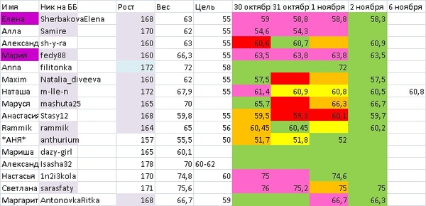 При желании можно вес написать и немного рассказать как дни без отчетов проходили, но заносить в табличку не буду :)